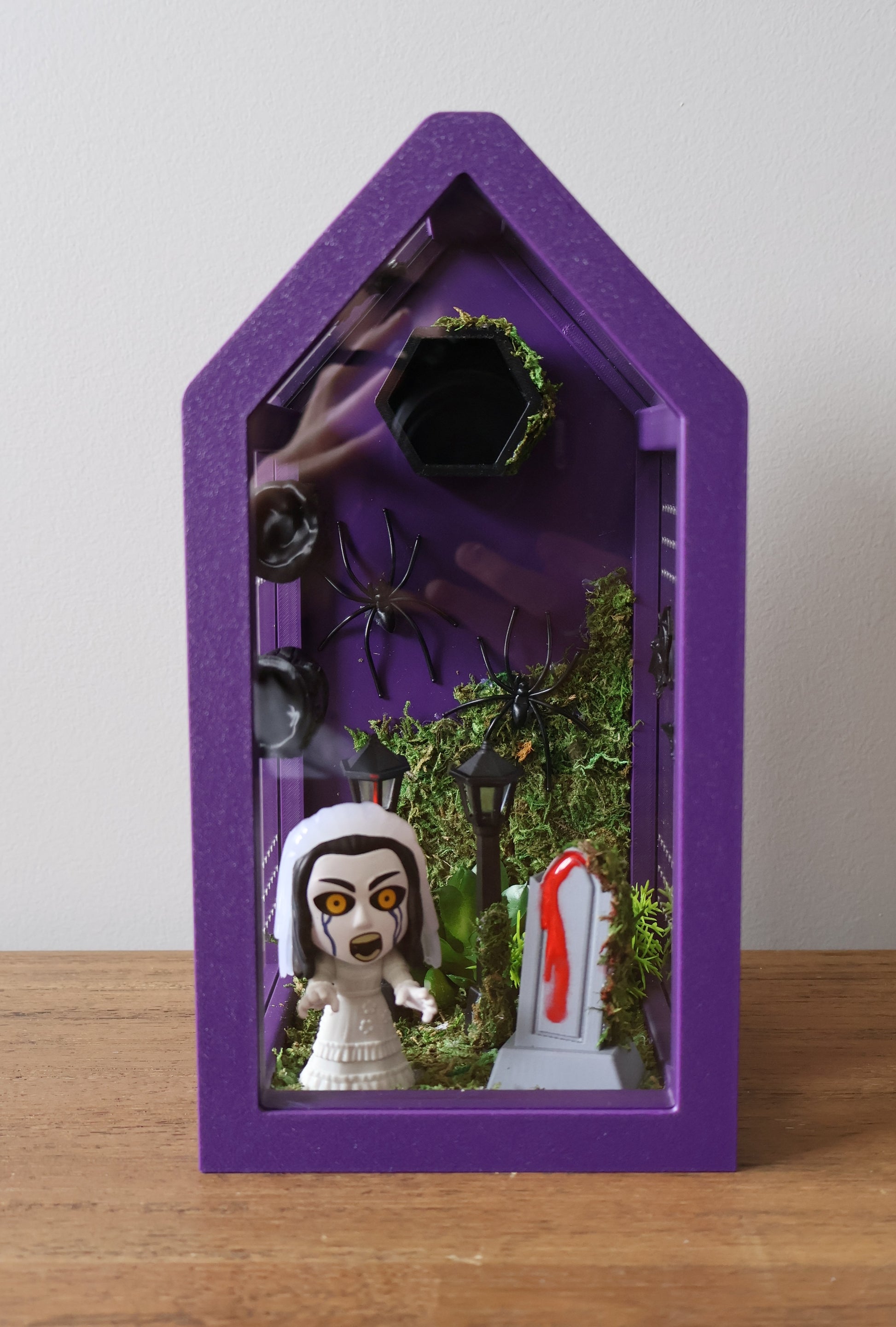 Our jumping spider enclosure Black Widow is expertly designed in the shape of a house to replicate the natural forest habitat your spider craves. Fully 3D printed with durable, eco-friendly PLA material, this enclosure features natural reptile-grade moss, multiple hiding spots, and textured climbing areas that encourage your spider’s natural behavior.
